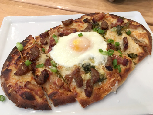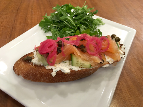 The breakfast naan pizza with gruyere, maple sage sausage, bacon, jalapeno relish, grilled onion and a whole sunny-side-up egg is pretty good, the aforementioned malted milk pancakes won’t steer you wrong either, but the thing that really got me was the house-cured lox on toast. I normally hate lox, so to find a dish with lox that is not only palatable but actually very enjoyable is a rarity for me. The lox is served up with preserved lemon cream cheese, pickled shallots, cucumber and capers all piled high on crispy toast. It’s really a great way to start the day.