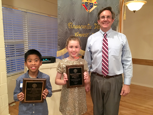 The winners were Riley Montelibano, first place, a fifth grade student at St. James and Madeline Higgins, second place, a fifth grade student at St. Bede.