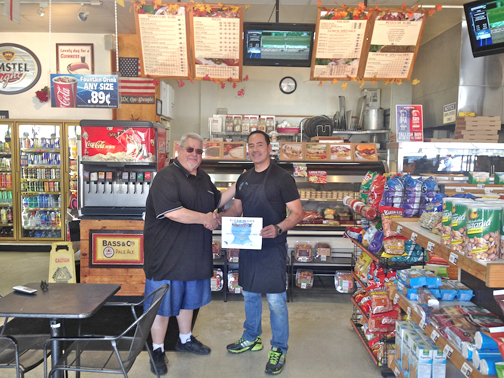 Michael LeFevre, left, Pizza Wars event coordinator (CVIM), and Raymond Cherfane, owner Gardenia Market and Deli at 4121 Pennsylvania Ave. in La Crescenta.