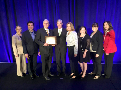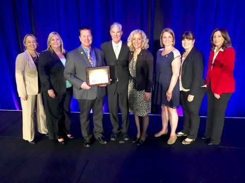 In photo from left are Assistant Superintendent Lynn Marso, Teacher Nicolas James, Principal Stephen Williams, California State Superintendent of Schools Tom Torlakson, Teacher Carolyn Burg, Teacher Sara Morris, L.A. County Superintendent of Schools Dr. Debra Duardo and GUSD Assistant Superintendent Dr. Kelly King.