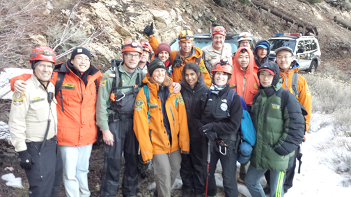 A hiking club from UCLA was full of happy faces after Montrose Search and Rescue team members led them out of the forest in icy, wet weather.
