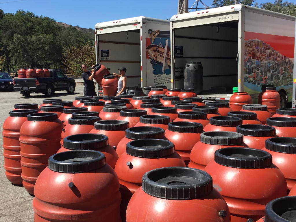 Pre-ordered rain barrels were delivered to local residents at the Descanso Gardens “Drought-Tolerant and Rain Barrel Event.”
