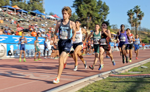 Saturday morning the team of Sammie Phinney (above), Grace Keller, Elizabeth Filipian and Jestena Galvan in the girls’ Invite Shuttle Hurdles placed second with a time of 1:07.05. Individually Phinney ran the 100H. Melnyk ran with one of the strongest half milers in the state, clocking a time of 2:13.39 to place fourth. Dani Jones of Desert Vista won with a time of 2:08.85 and Cassie Durgy of Huntington Beach placed second (2:11.70).