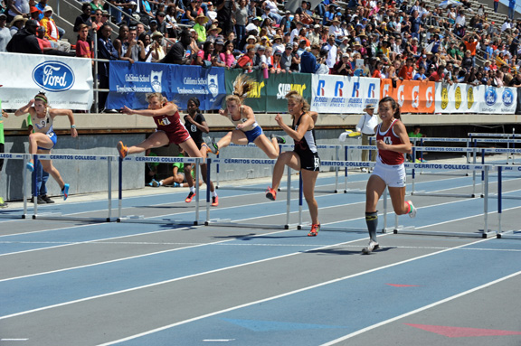 It was a long day for both athletes and spectators as 64 events – 16 in each of four divisions – spanned almost seven hours. Only one of the Pacific League’s athletes qualified to advance to the CIF masters. Sarah Prystupa of Burroughs High School vaulted 12-03 to take second in the CIF finals and will move forward with the fifth best height cleared in the event. Best mark at 13-3 was by Rachel Baxter from Canyon/Anaheim.