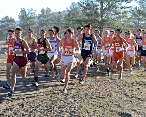 Due to the dust problems athletes and spectators encountered the Riverside Invitational, the CIF committee had water trucks watering down the course throughout the day. Unfortunately this made running the course difficult as the soles of the runners’ shoes were caked with inches of dirt. In addition, there were scheduling changes. This year the committee held only two heats rather than the traditional three to move teams forward. The Division 1 heats assembled 29 teams on the start line. Each team was composed of seven athletes resulting in more than 203 runners competing for the top 16 team spots of each race. There were two heat races for each division trying to qualify for the CIF finals. The CIF finals take place Nov. 21 at Mt. SAC.