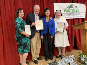 Over 100 attendees celebrated the 60th Anniversary of the Foothills Community Scholarship Foundation (FCSF) of La Cañada Flintridge at the FCSF Scholarship, Distinguished Person and Exemplary Service Awards ceremony. An event highlight was the recognition of 13 graduating high school students from six local schools who were awarded scholarships totaling $27,500.