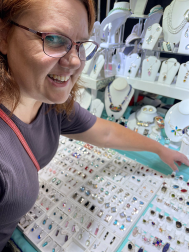 Rings, necklaces, bracelets and brooches were available in all price ranges. Especially popular, though, were strips of beads starting at $1 for do-it-yourself jewelry makers. Also available were $29 loose gems ready to fit into empty settings. Unique pieces at bargain prices included a colorful bracelet of agate discs for $200 – a steal.