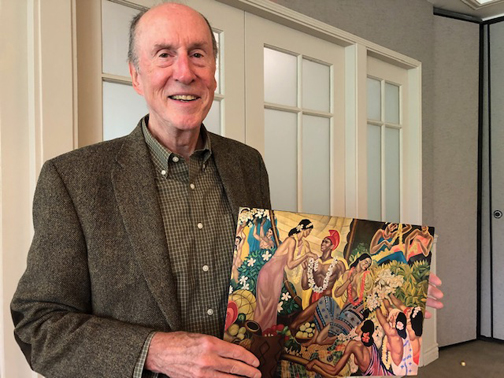 Merritt told his audience that Byrne’s murals were inspired by menu covers presented to diners on the S.S. Lurline, a luxury-liner bound for Hawaii, and that the murals pay tribute to the Golden Age of Hawaiian tourism.