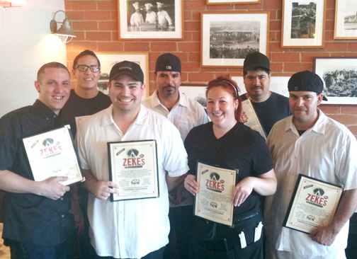 Take a tip from Evan Sickra (left), Zeke’s Smokehouse (2209 Honolulu Ave.) manager, and put some barbecue in your life this Labor Day weekend! Kitchen manager Andrew Godin (front center) recommends their No. 1 dish: Texas beef brisket that’s smoked for 14 hours and then thinly sliced and tossed with their homemade Texas barbecue sauce. It costs just $17.95 with two sides or $11.95 as a sandwich. Add to that a flight of local craft beers, like the new Hanger 24 and Wolf Creek, and you’ve got a party! Personally, I could eat here every night of the week and never get bored. Think baby back ribs, pulled pork, oyster po’ boys, and fried chicken. And guess what? They sell their barbecue sauces to go!