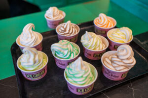As I ventured through the cobblestoned streets of The Wizarding World of Harry Potter, the allure of a new ice cream venue beckoned. Florean Fortescue’s Ice Cream counter recently opened at Universal Studios Hollywood and it’s a haven for those who seek solace in creamy enchanting treats. Located inside Honeyduke’s Sweets Shop, the counter boasts 10 unique flavors of soft serve, including the much-coveted butterbeer variety, each served in a traditional cup, waffle cone or special souvenir cup.