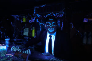 But the highlight of the night, and indeed the star of the show, was the new/old maze, “The Chilling Chambers.” This new maze is a soft reboot of a past maze from 1973, “10 Chilling Chambers” – the very first maze in the haunt’s storied history. The Keeper welcomes all of us “Fringies” to his haunt that pays homage to some of the greatest mazes from the last 50 years. At one point, guests literally walk through a graveyard where each headstone marks a notable maze from the last few decades, and guests cry out to point at their favorite mazes as the memories are drawn from their minds like a ghost dragged from a grave. It was nice to relive some of those best-ofs, and the maze itself is fun even for those neophytes who don’t study the haunt’s history.