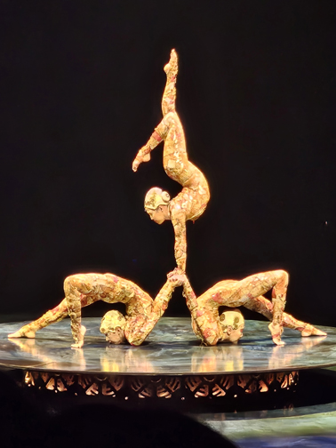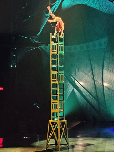 Mixed in with the story telling are acrobatic performances that dazzle. From seeing a trio of female contortionists bend in ways that don’t seem – well, right – to watching two performers conquer the wheel of death, the traditional circus-like components of Cirque du Soleil are very satisfying … and breath-taking. Oftentimes the sharp intake of breath by fellow audience members could be heard.