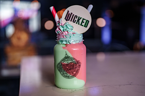 But if you head to The Toothsome Chocolate Emporium at CityWalk the limited-time milkshake, the Ozitively Pink & Green Shake – half strawberry and half key lime, served side-by-side in the cup – is fun, interesting and colorful enough to feel straight out of Glinda and Elphaba’s closet.