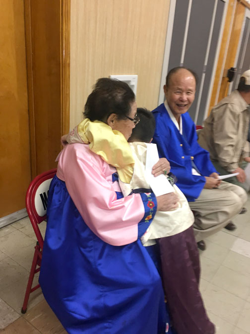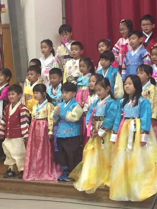 At Lincoln Elementary School (middle right), children cut out dog masks that they could wear to commemorate the Year of the Dog while at Monte Vista Elementary (bottom right), students in the Korean FLAG program invited their grandparents to take part in the day’s festivities. Several of the students dressed in colorful Korean garb.