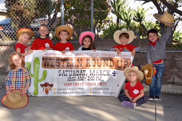 La Cañada Flintridge Community Center Preschool students are saddling up to host the 24th annual Western Round-Up on Saturday, March 4 from 10 a.m. to 2 p.m. This popular western-themed fundraiser features fun for all ages: pony rides, a petting zoo, inflatable slide, carnival games and prizes, silent auction, raffle to win an iPad Mini (sponsored by Carey Haynes, Partners Trust), Los Gringos Locos taco carts, a bake sale and much more.