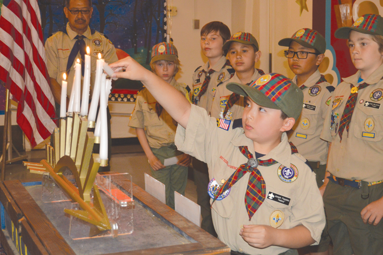 It was a busy night for Cub Scout Troop 310 during its annual Blue and Gold ceremony held on Feb. 28 in the Lincoln Elementary School auditorium. The following Webelos II, Cub Scouts from Den 5, Troop 310 completed the requirements for the Arrow of Light Rank: Dylan McLemore, Peter James, Giovanni Mele, Thomas Arellano, Joseph Papaleo, Dominic Horton, Gavin Arntson, Joshua Stone, and Lex Mackey.