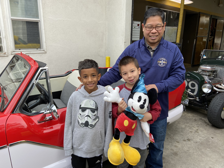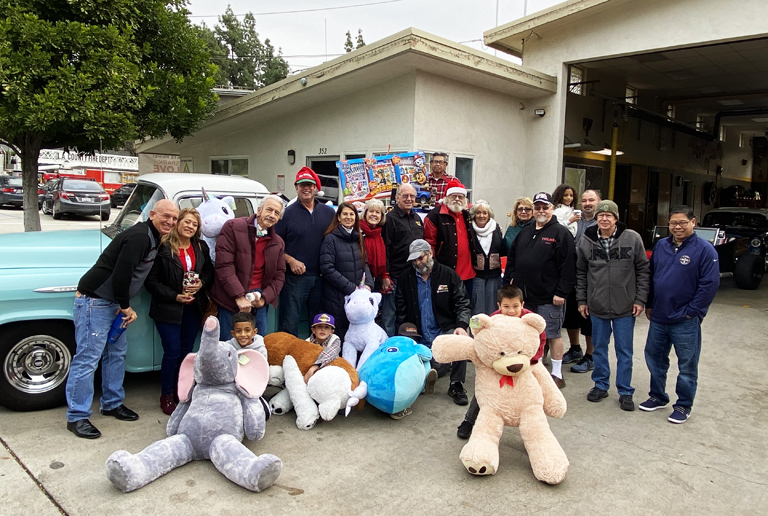 Every Saturday, the Early Rodders meet in the parking lot of the Regal UA La Cañada theaters but once a year they turn that meeting of “gear heads” into a meeting of Santa’s helpers. They fill their classic cars with toys and drive them to Los Angeles County Fire Dept. – Station 82. For eight years students and staff from St. Andrew Catholic School in Pasadena have donated many of the toys delivered to the fire station by the Early Rodders.