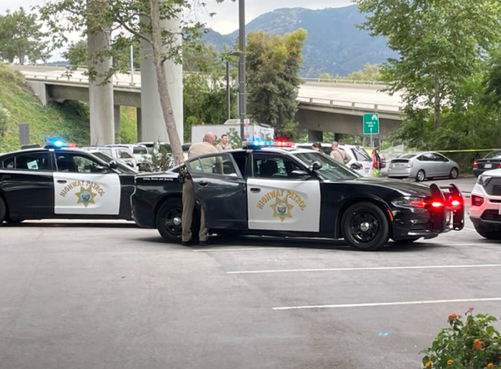 California Highway Patrol received a call about 12:30 this afternoon [Friday] of a vehicle that had left the eastbound Foothill (210) Freeway at the southbound Glendale (2) Freeway and landed onto the parking lot at United Artists theaters in the 1900 block of Verdugo Boulevard.“Officers arrived about 12:42 p.m. They noticed a black BMW that was in the parking lot of the theater and it did [appear] to have left the eastbound 210 at the 2 transition,” said Officer Boyd, CHP.
