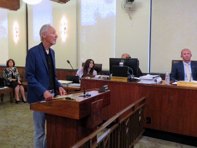 Anti-scooter advocate Tony Passarella addressed the Glendale City Council at Tuesday’s afternoon meeting.