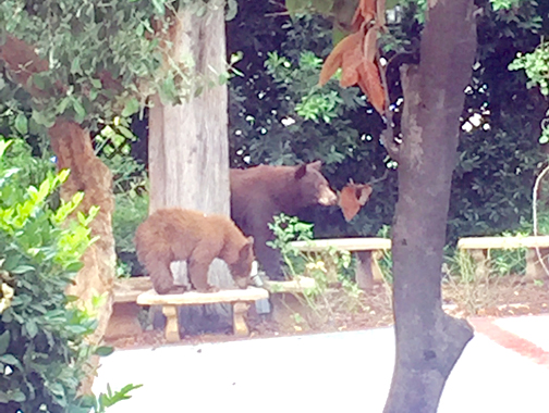 On Friday, the Crescenta Valley once again went a little bear crazy as a mama and baby roamed around the 2400 and 2500 blocks of Cross Street and Fairmount Avenue. The bears spent some time at St. Luke’s of the Mountains, before moving onto the backyard of local residents. The mama and baby moved from backyard to backyard as Los Angeles County Sheriff’s Dept. deputies, officials with Pasadena Animal Control and California Dept. of Fish and Wildlife officers kept a watchful eye. The original plan was to attempt to herd them back toward the Angeles National Forest, but the bears were not quite ready to go. The decision was then made to tranquilize the two and take them back home.