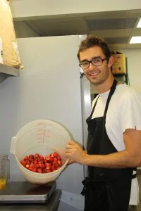 “Everyone has to try this,” says Thorup each time he finishes a new recipe. This time it was chocolate swirled into smooth strawberry.