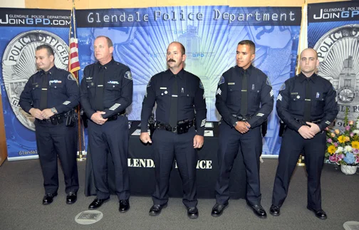 A promotion ceremony was held on the afternoon of Nov. 13 for five Glendale police officers who advanced within the department. Moving upward were Sgt. Tigran Topadzhikyan to the rank of police lieutenant; Sgt. John Gilkerson to the rank of police lieutenant; Officer Scott Holmes to the rank of police sergeant; Officer Ernesto Gaxiola to the rank of police sergeant; and Officer Alex Krikorian to the rank of police sergeant.