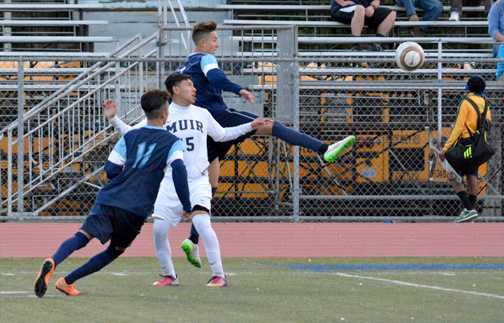 25-yard left foot strike in the dying minutes sank the hopes of the Crescenta Valley High School boys’ varsity soccer team for a win in the opening conference game against host John Muir HS Pasadena, which ended in a 1-1 draw.