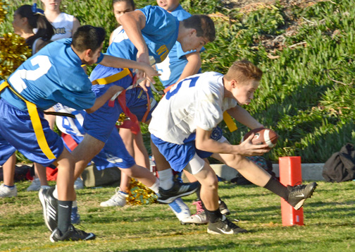 If you were to view the Rosemont Spartans’ flag football team as a mathematical pattern, you’d predict the team would score eight touchdowns today against the Toll Titans. It only makes sense, seeing as how in each of their first games they’ve doubled their offensive output: one touchdown vs. Roosevelt, two vs. Toll and then four scores last week against Wilson.