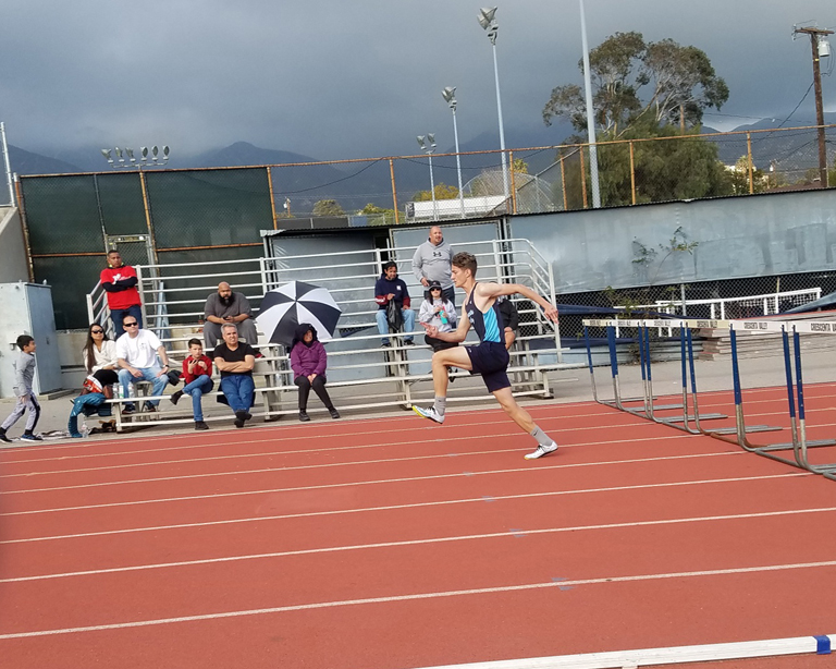 Preparing for their first Pacific League track and field meet, the Falcon boys faced numerous challenges due to the extensive amount of rain that hammered Southern California. Workouts leading up to the first meet would normally have included runners and field event participants getting acquainted with their events through practice meets to alert of any challenges in each event. Weather prevented this.