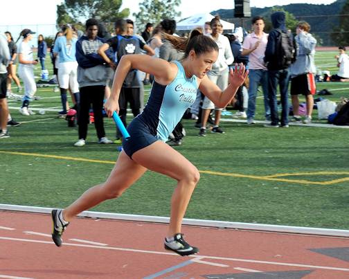 The Falcons took the first event in a no contest win of the day in the 400m relay (44.78). Gold winners for the Falcons were Dylan Wilbur, Artin Allahverdian, Aidan Foote, Roy Choe and Zach Johnson. Freshman Wilbur had his second high performance race of the season in the 800m (2:02.8). Teammate Allahverdian, a junior, raced to a strong win in the 3200m (9:53.56) upsetting Burbank’s Elijah Parrott, who held the lead most of the race until the last 100m. Allahverdian had a strong finish, outdistancing his opponent to the finish line. Foote won the pole vault (12-0), Choe won the high jump (6-0) and Zach Johnson raced one of his best 1600m times (4:30.85).