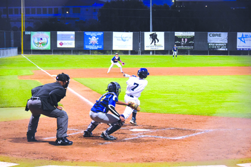 Then, in the fourth, Pasadena rallied, scoring two on an RBI zinger from Xander Inguanzo, the Bulldogs’ first recorded hit of the game. Inguanzo then stole second and, with a runner in scoring position, the Bulldogs’ shortstop and lead-off batter, Evan Coad, belted a ball down the first base line only to see the rally stopped short by an outstanding defensive play by Falcon right fielder Luca Cuneo. Although he was replaced on the mound by Campbell in the fifth inning, Maddox continued to bat, driving in two runs on a hard-hit single that required him to hobble down to first and finally leave the game. The Falcons would go on to score six runs in the sixth and take a commanding 9-5 lead. It looked like the Bulldogs might rally after Jesus Zuniga hit a towering homerun, but the rally would be stopped short and the game brought to a close by an outstanding full-speed full-stretch on-the-run catch by the Falcons’ center fielder Rowan Respicio.
