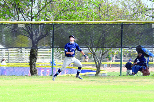 Left fielder Brendon Pehar runs down a fly ball against Pasadena. Photos by Roman INGUANZO