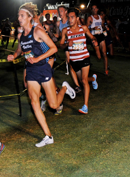 CV’s top performance of the evening came from junior Wilbur who, with two strong seasons already under his belt for the Falcons, took control of both the1600m and 800m races. Running with teammates Grant Lauterback and Ameer Mohammed, along with Glendale’s lead runner Arvin Sales, the pace was quick. Wilbur’s strength proved too much for the competition as he crossed the finish line winning with a PR time of 4:21.94; Sales placed second (4:22.77) followed by Lauterback (4:23.17) and Mohammed (4:23.25).