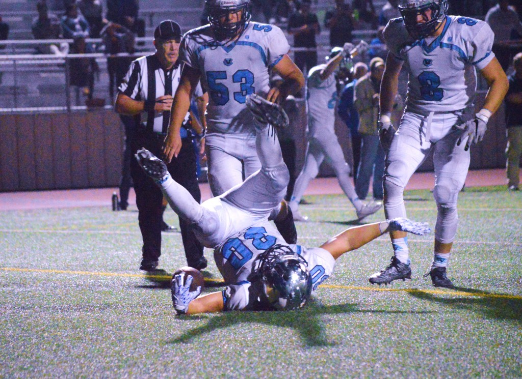 Brandon Beardt scores his first rushing touchdown by tumbling into the end zone Friday night vs. Burbank.