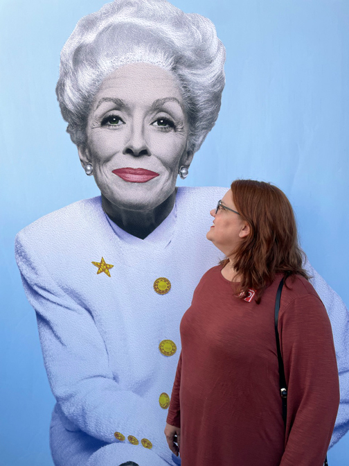 La Crescenta resident Suzette Van Sleeuwen eyes a poster of actress-writer Holland Taylor as “Ann” at the Pasadena Playhouse. The play follows the life of the late Texas governor Ann Richards.