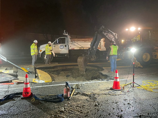 There is an emergency pipeline repair in progress on Friday night at Ocean View Boulevard and the 210 Freeway. Ocean View is closed in both directions from Montrose Avenue north to Waltonia Drive. CV Water District crews are onsite to assess the situation and make repairs. Currently the on-ramps to the 210 Freeway are closed in both directions. During the repair process, CVWD customers may experience low water pressure to no water service. Updates will follow as more information is available. According to Kellen Boyce with CVWD, the crews will be onsite to make the repairs to the pipe and the initial road repairs. He added that no additional homes will be without water. CVWD issued a statement apologizing for any inconvenience. Those with questions or comments concerning this outage can contact Customer Service at (818) 248-3925 or via email at customerservice@cvwd.com.