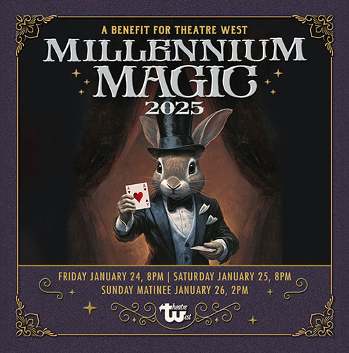 “Millennium Magic 2025” Back in 2000, magician, actor and Theatre West member George Tovar originated Millennium Magic, an annual festival of Magic Castle magicians performing for one weekend each fall at Theatre West. This year, George returns to host three amazing performances as he is joined onstage by his magical friends from Hollywood’s Magic Castle, Vegas, cruise ships and television shows. This array of great talents from the world of magic is the 23rd annual presentation of this popular show. The line-up of magicians will vary at each performance, so one could attend all three dates and see three different programs. Nowhere else will you be able to see an array of talented magical performers of this caliber at such an affordable price.