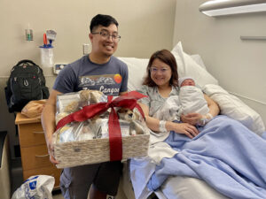 USC-VHH gifted the family with a basket of supplies and services donated by the Crescenta Valley Chamber of Commerce. Included in the basket was a handmade blanket made by one of the hospital’s nurses Mandi Rub, RN. For the past 30 years Rub has created a blanket for the first baby of the New Year at USC-VHH.