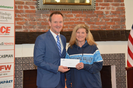 Chris Waldheim, a member of the board of the Mary Pinola-CV Chamber Education Fund, shared the mic with Edna Karinski, CEO of the Community Foundation of the Verdugos, to distribute over $18,000 in grants. Recipients were Crescenta Valley High School Instrumental Music Program, Crescenta Valley United Softball Association, Foundation for Living Beauty, Friends of Crescenta Valley High School Falkon Robotics and Learning Tree Preschool – Crescenta-Cañada YMCA.
