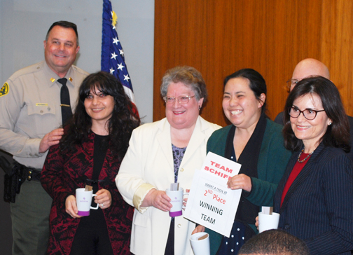 Just as the pair was getting ready to announce the beginning of the test, “Wizard” Chris Waldheim of J’s Maids and Maintenance made his way into the room toward a crystal ball. The goal was to see the future, but the ball was giving no clues as to who would be the big winner of the day. Teams were then given 25 minutes to tackle the 66 questions. After all the answer sheets were collected, it was announced that, for the third consecutive year, the team from Congressman Adam Schiff’s office took first place, tying with the SIG Property Management team. In addition, two non-profits were each awarded $500 in cash. These were USC VHH and Rose Bowl Aquatics Center. SIG Property Management also won the pot o’ gold drawing, but donated it to the Education Fund.