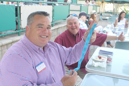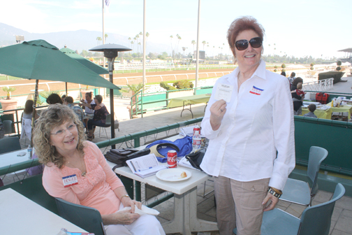 It was an enthusiastic crowd from the Crescenta Valley that turned out for the annual Day at the Races at Santa Anita Race Track on Sunday afternoon. The fundraiser, which benefitted the Montrose-Verdugo City and Crescenta Valley chambers of commerce and the CV Sheriff’s Support Group, provided ticketholders with seating in the exclusive Top o’ the Stretch area that is excellent for viewing the ponies as they made their way around the track. Tickets included a hot lunch provided by Schreiner’s Fine Sausages and barbecued to perfection by Capt. Bill Song of the CV Sheriff’s Station. Desserts were provided by the chambers and there were also a silent auction and 50/50 drawing. “Expert” handicapping was available by Rick Dinger.
