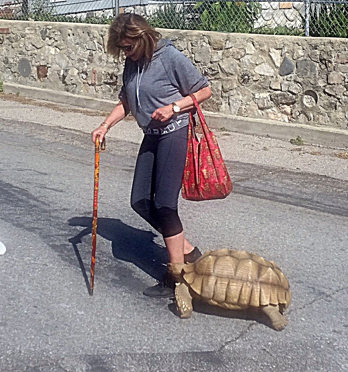 Prior to the outbreak of the coronavirus, La Crescenta resident Doreen was seen walking her pet tortoise – another unique aspect of living in the Crescenta Valley.