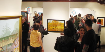 Visual artists were invited to exhibit and sell their work in two curated gallery spaces and at booths in the outdoor art fair. This split presentation format allowed artists to present to the community even if they did not want to enter work in the curated galleries.