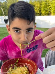 Maximus Armen, 13, enjoys khao swei in his La Crescenta backyard.