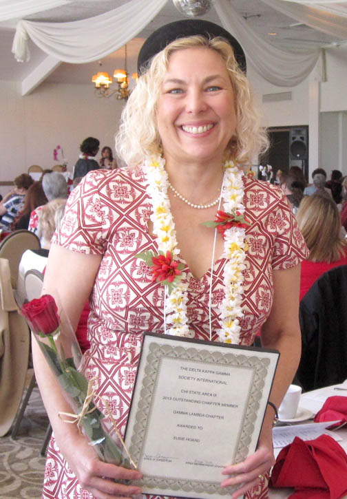 Fifth grade Sunland Elementary school teacher Susie Hoard was awarded Outstanding Member of Gamma Lambda 2013 at the Area IX Festival at the Knollwood Country Club in Granada Hills in March.