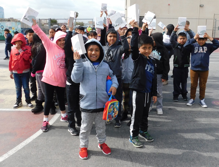 The end of recess took on a celebratory twist at Union Avenue Elementary School in Los Angeles when the Kiwanis Club of La Cañada recently distributed new dictionaries to nearly 200 third grade students. Under the guidance of their teachers, students were able to receive their dictionaries in lightning fast speed!