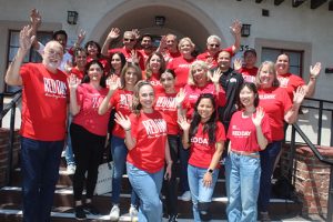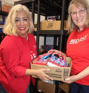 On Thursday May 8, about 30 KW employees and friends gathered to stack the storage shelves at the Glendale Y with dry food items, household items, toiletries and baby items. They all wore red shirts for this international day of service.