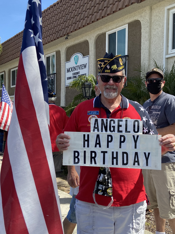 So members of the local American Legion and Veterans of Foreign Wars posts, which Chiarot is still an active member of, coordinated with Mountview a drive-by birthday celebration for him. And to make it extra special, AL/VFW members Jack Wunderlich and Chuck Hughes arranged to have the Glendale Fire and Police departments and the CV Sheriff’s Station participate.