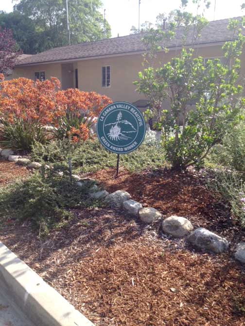 La Cañada Valley Beautiful periodically issues the award to honor local landscapes of high aesthetic value. The non-profit citizen organization is dedicated to landscape beautification and conservation of public venues in the City of La Cañada Flintridge.