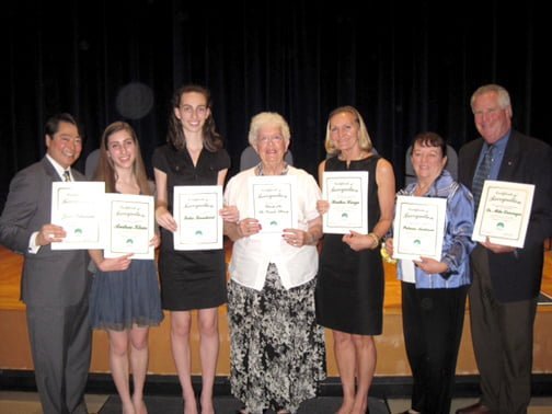 Student Service Awards were given to two high school juniors, Huntington Hospital volunteer Andrea Klein and honor court member Talia Bernhard.